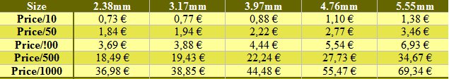 Available in ten sizes with standard hole diameters as listed.